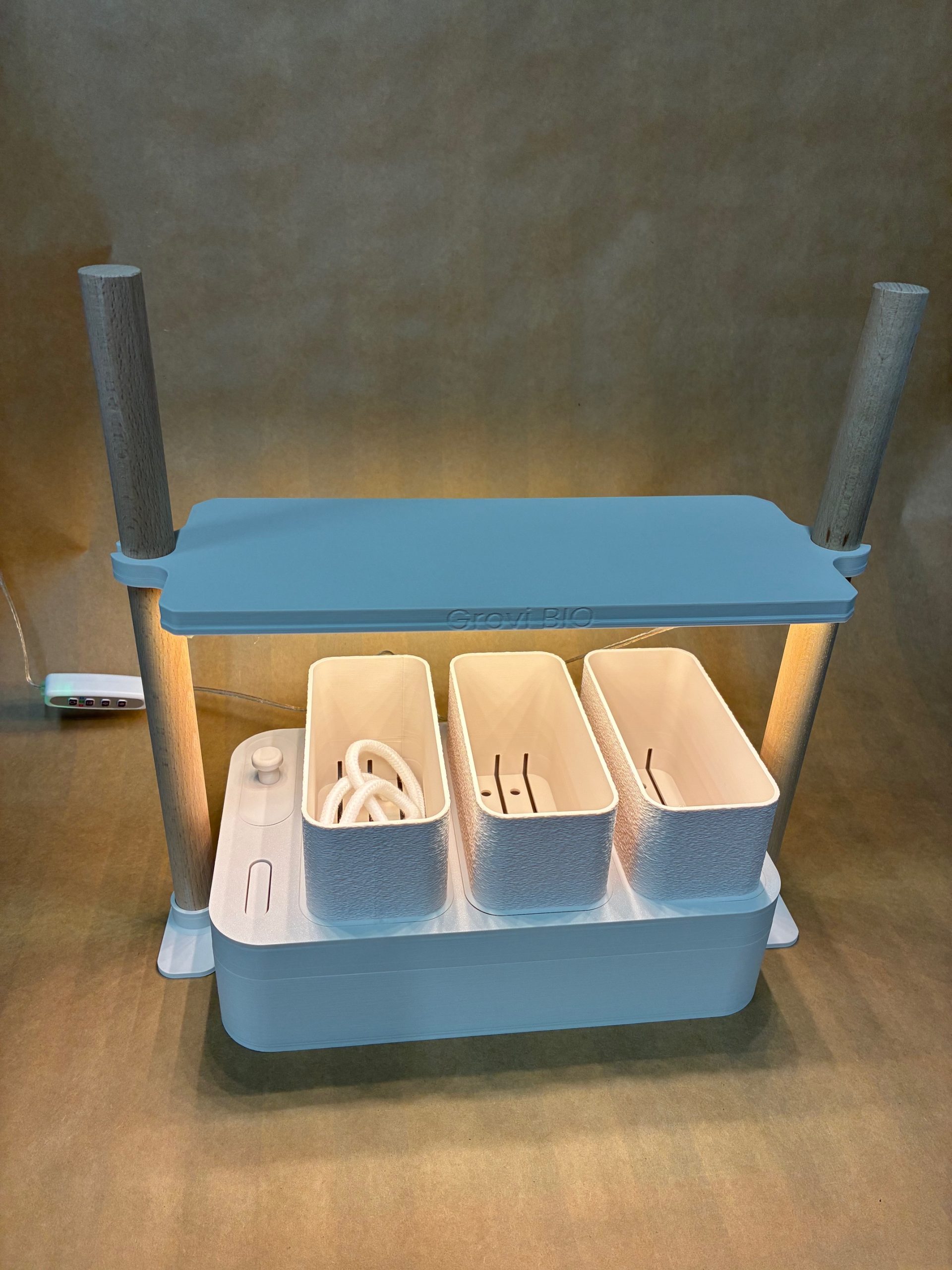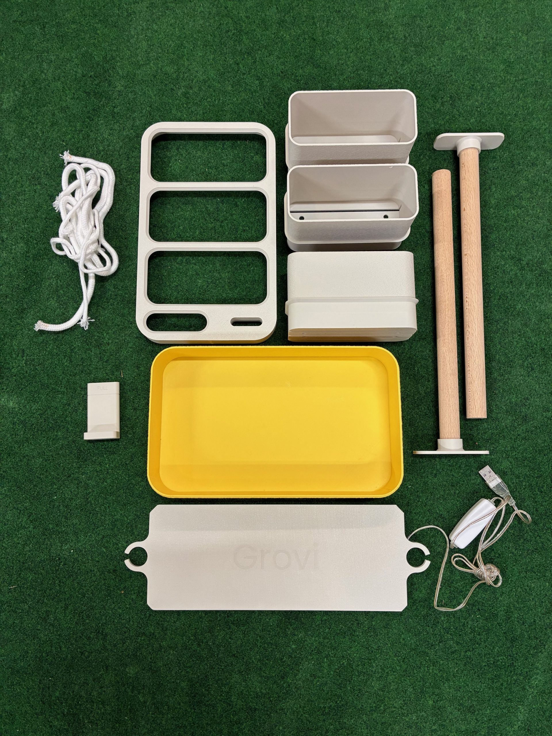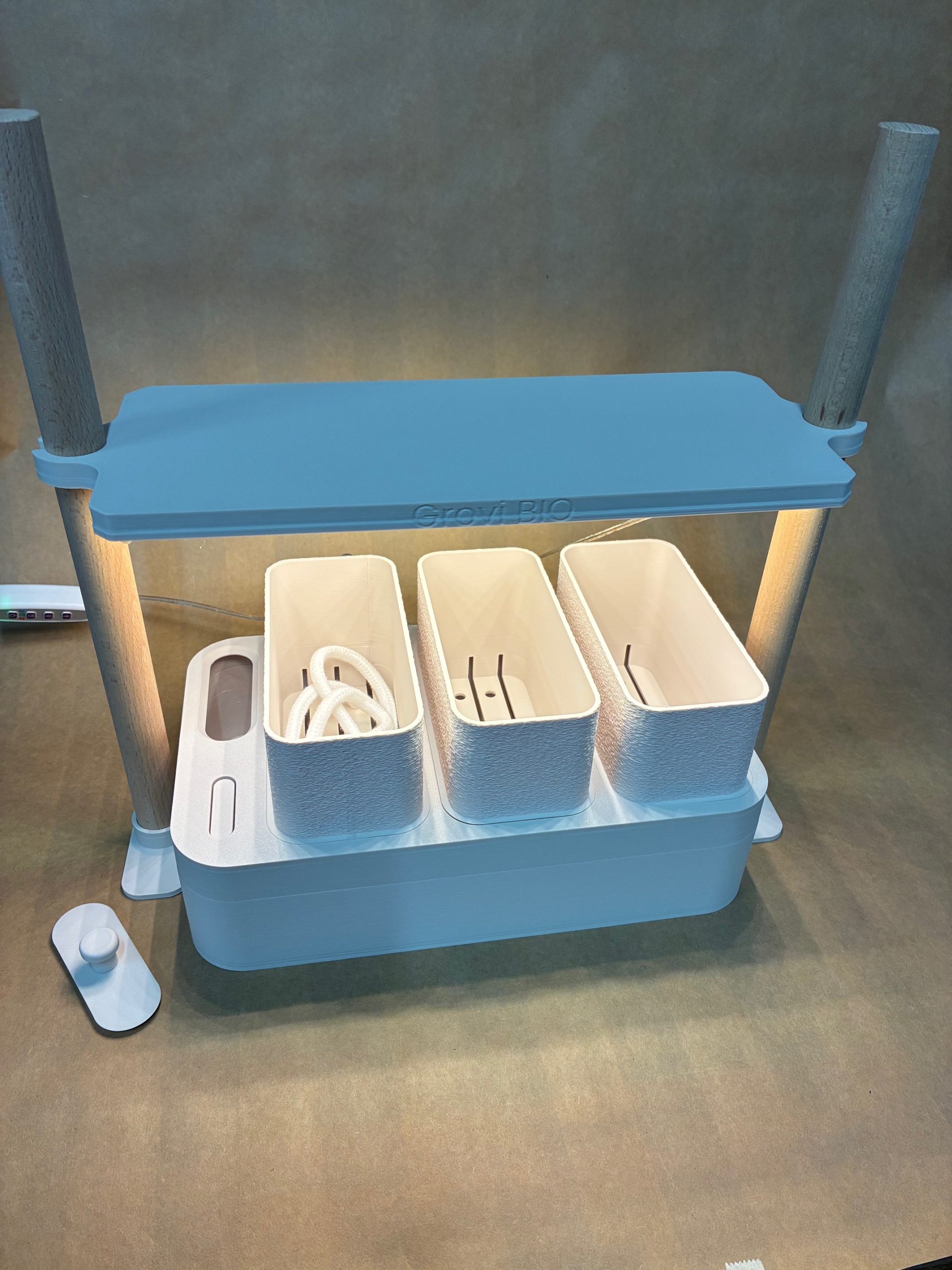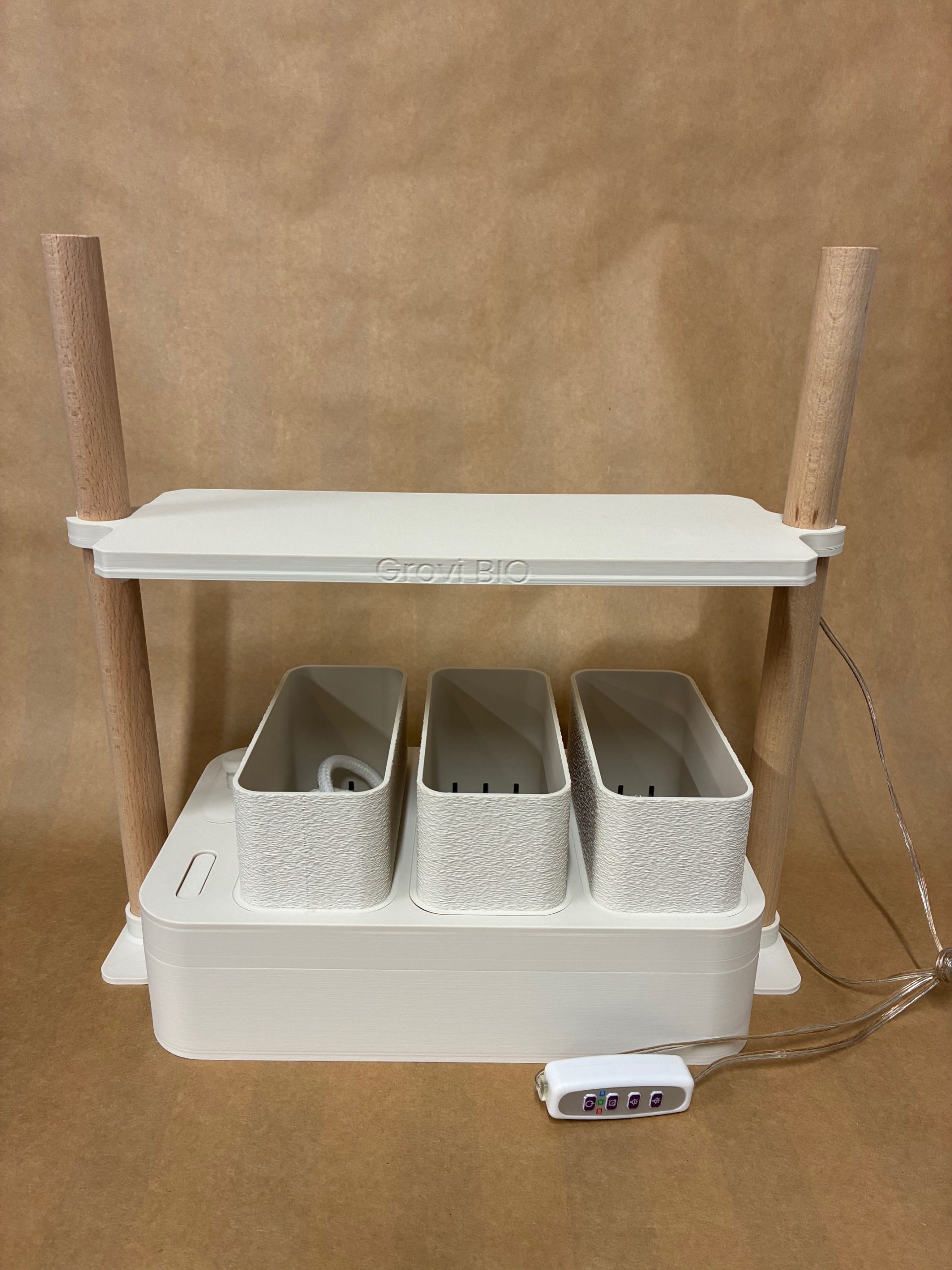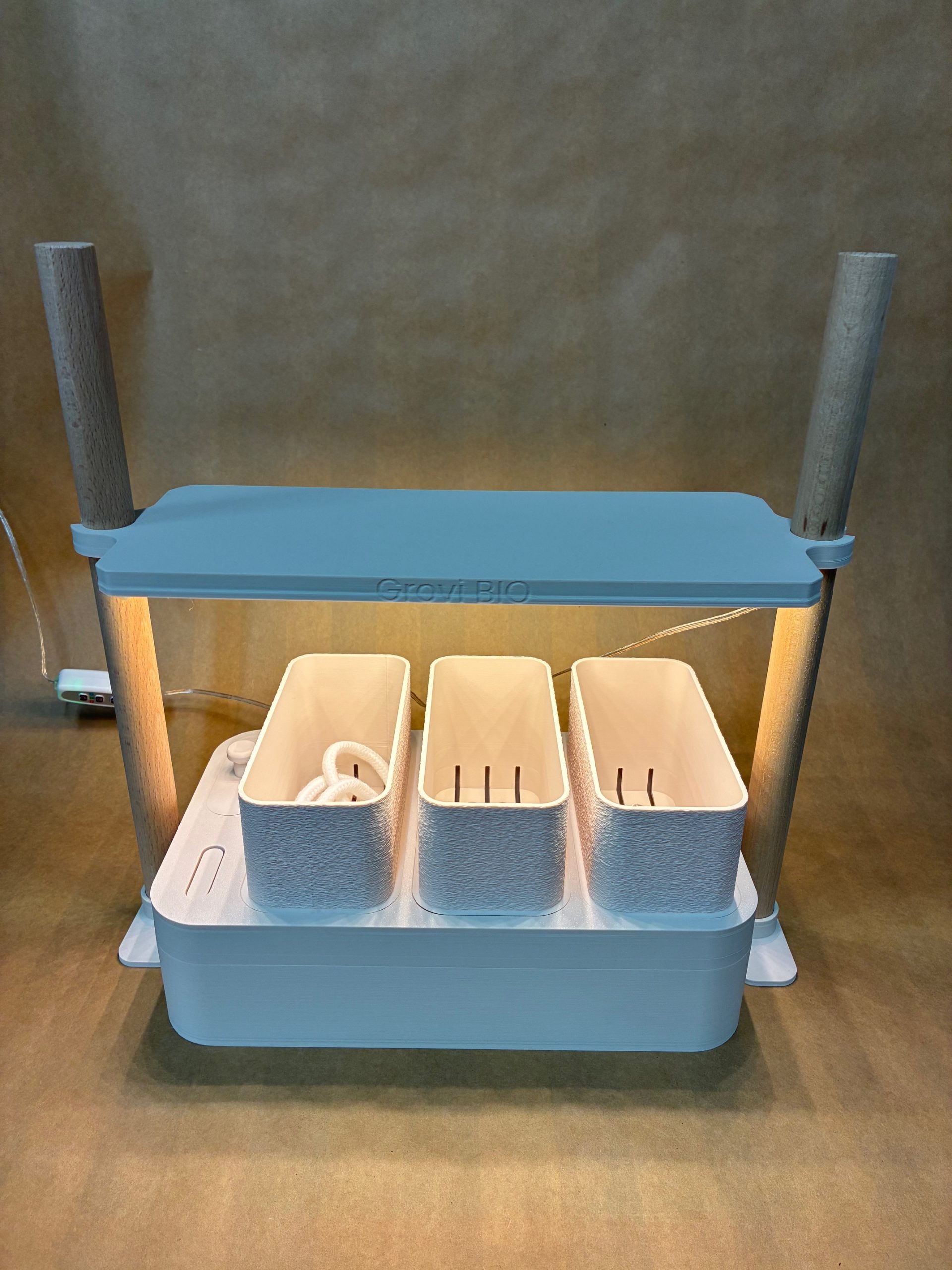 Der GROVI BIO ist dein moderner Indoor-Garten, hergestellt aus biobasiertem PLA – vollständig 3D-gedruckt, regional produziert und perfekt für Kräuter, kleine Pflanzen und Mini-Gemüsesorten.
