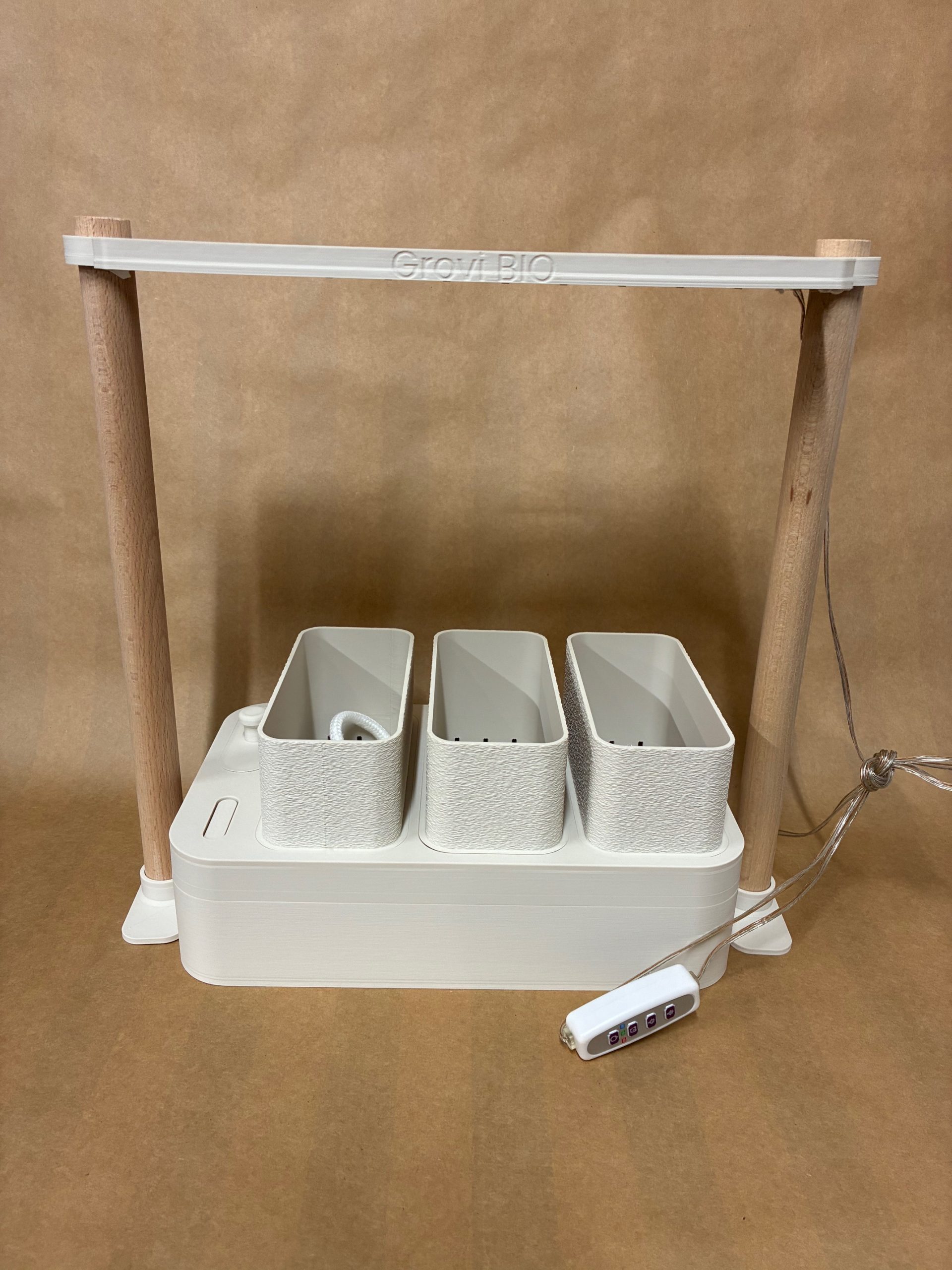 smart garden, indoor garden, kräuterstation, growlight, pflanzenlampe, selbstbewässerung, hydroponik, PLA, nachhaltig, basilikum züchten, minigarten, grovi bio, tabletop garden, 3d druck pflanzen