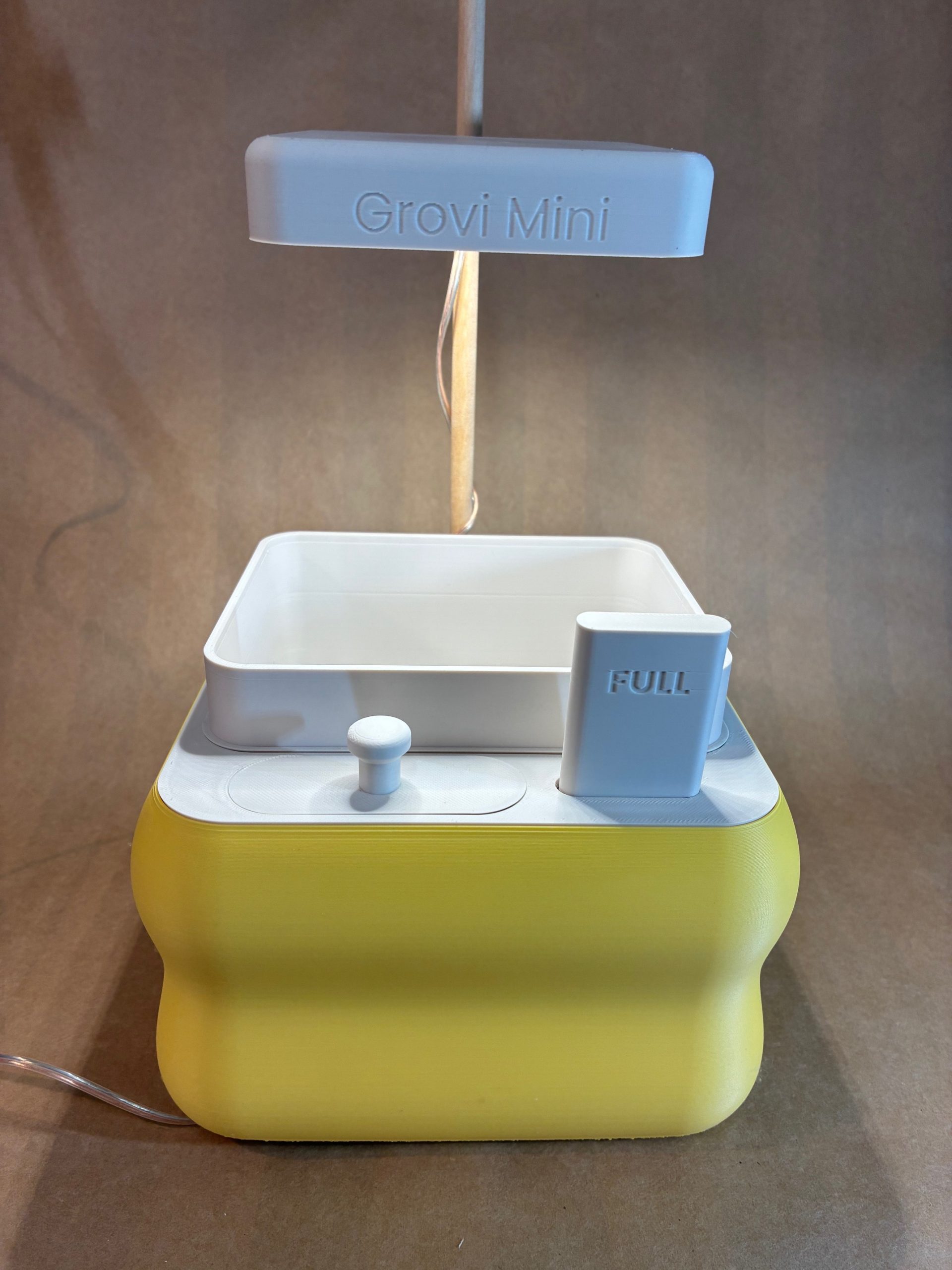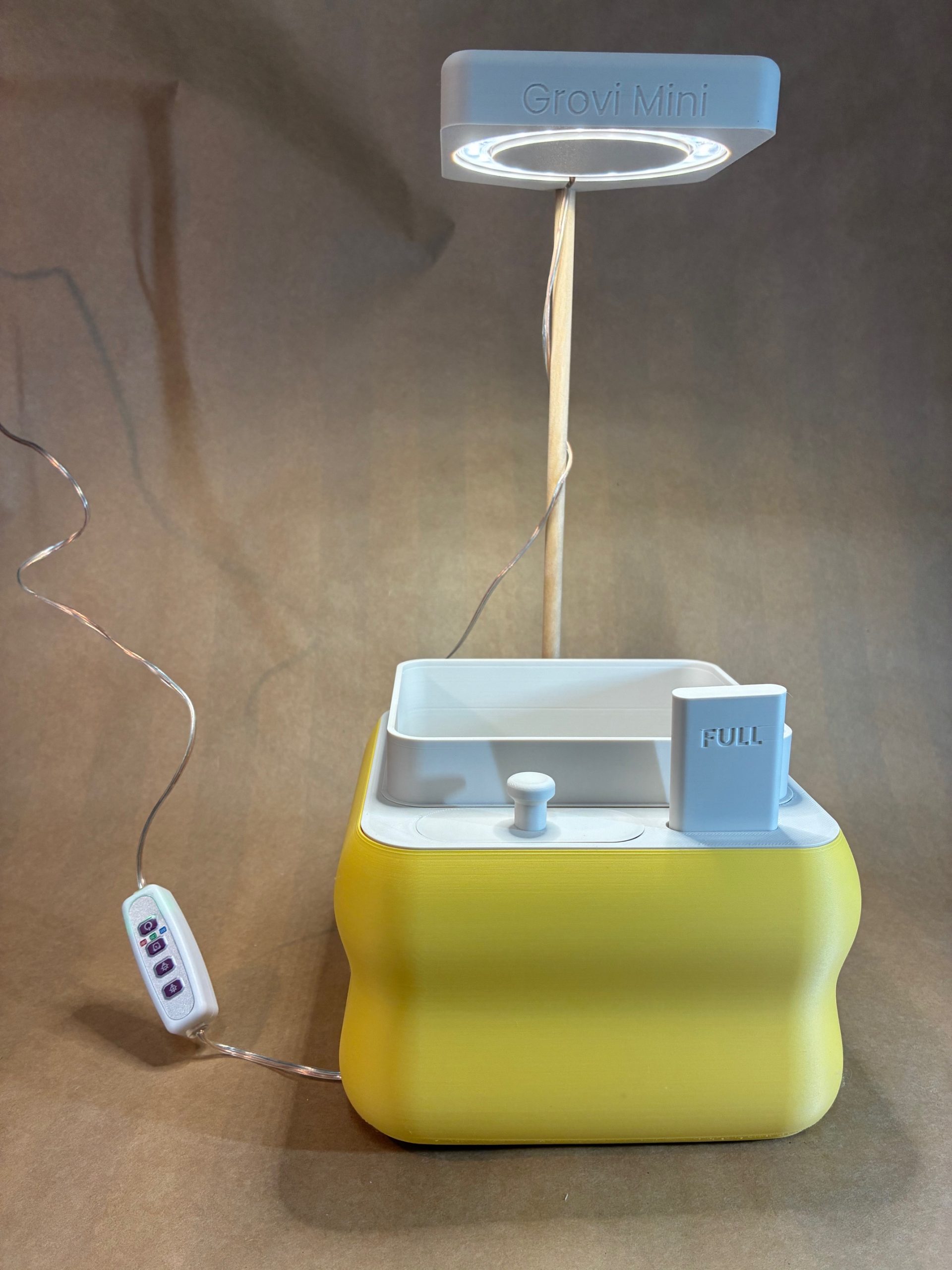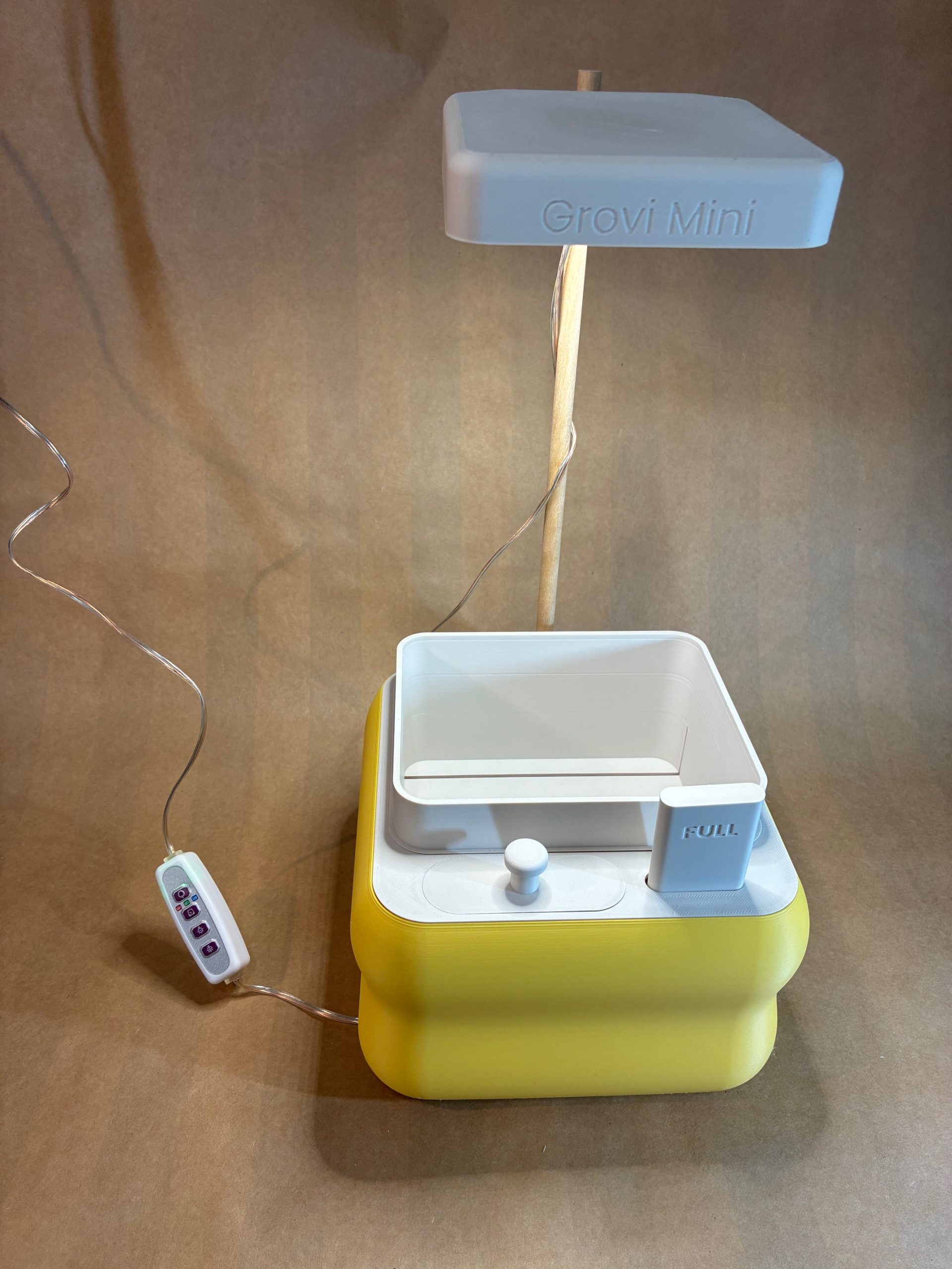 Der Pflanztopf ist bewusst kompakt und leicht gestaltet, sodass er selbst auf kleinen Fensterbänken oder Arbeitsflächen Platz findet. Das moderne, minimalistische Design fügt sich harmonisch in jede Umgebung ein und macht den Grovi Mini zu einem echten Blickfang. Gleichzeitig ist er unglaublich einfach zu bedienen: Wasser einfüllen, Samen einsetzen, Licht einschalten – und schon beginnt dein persönlicher Mini‑Garten zu wachsen.