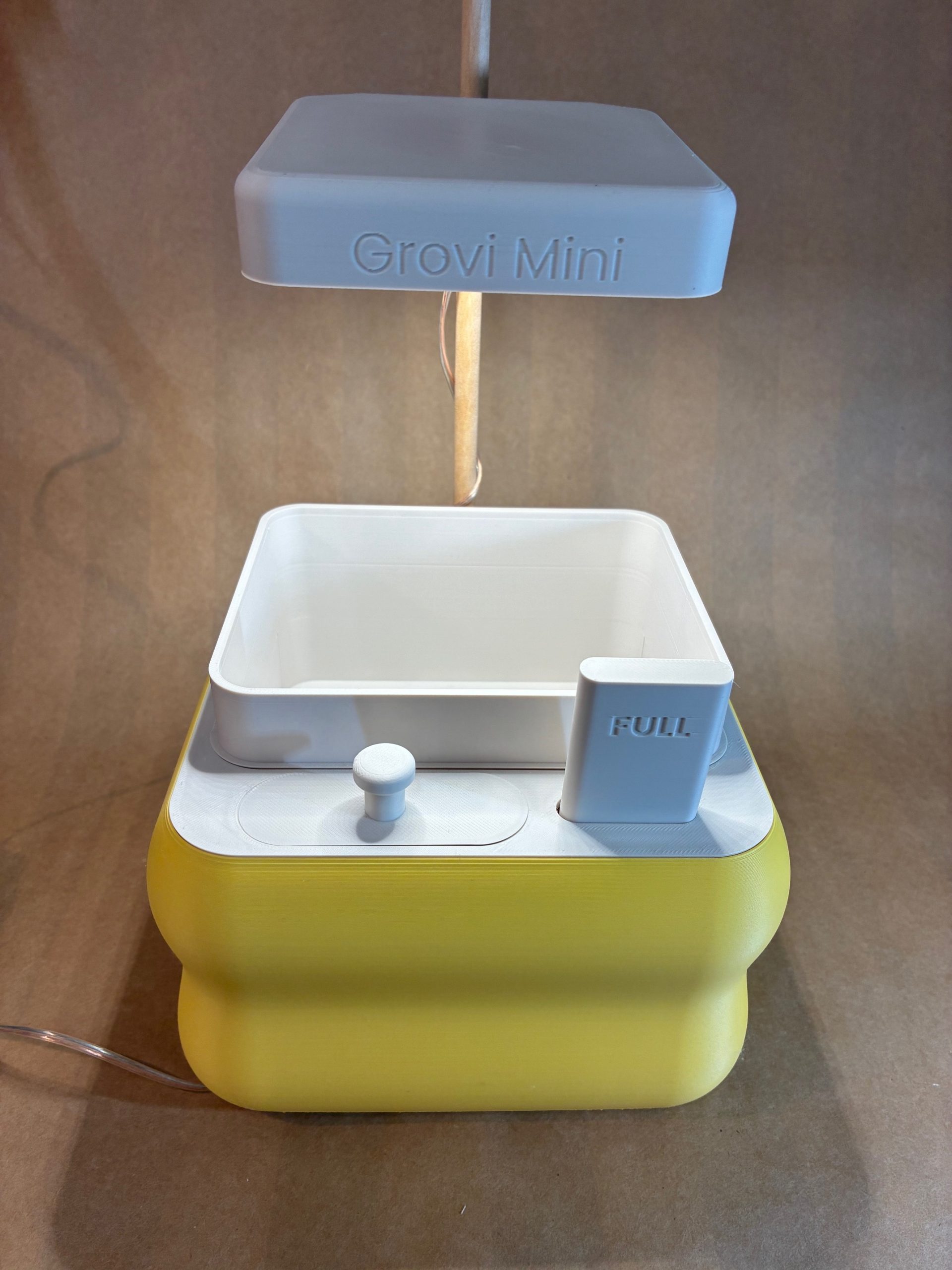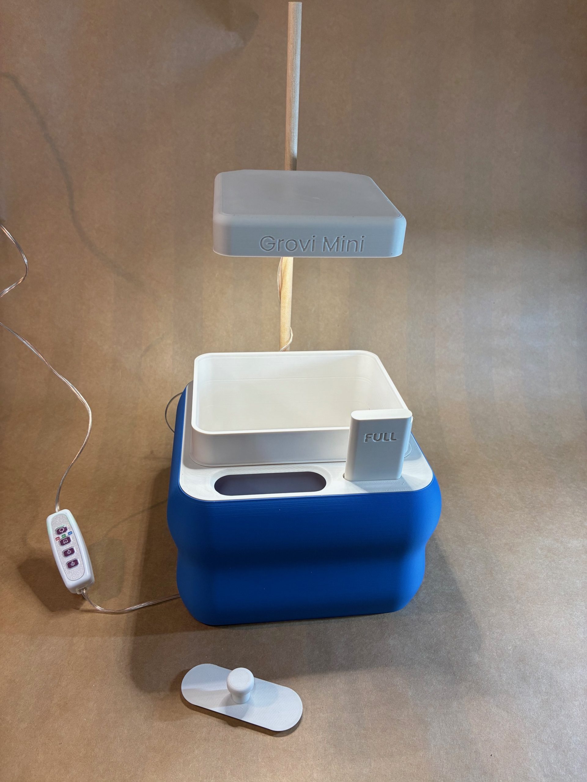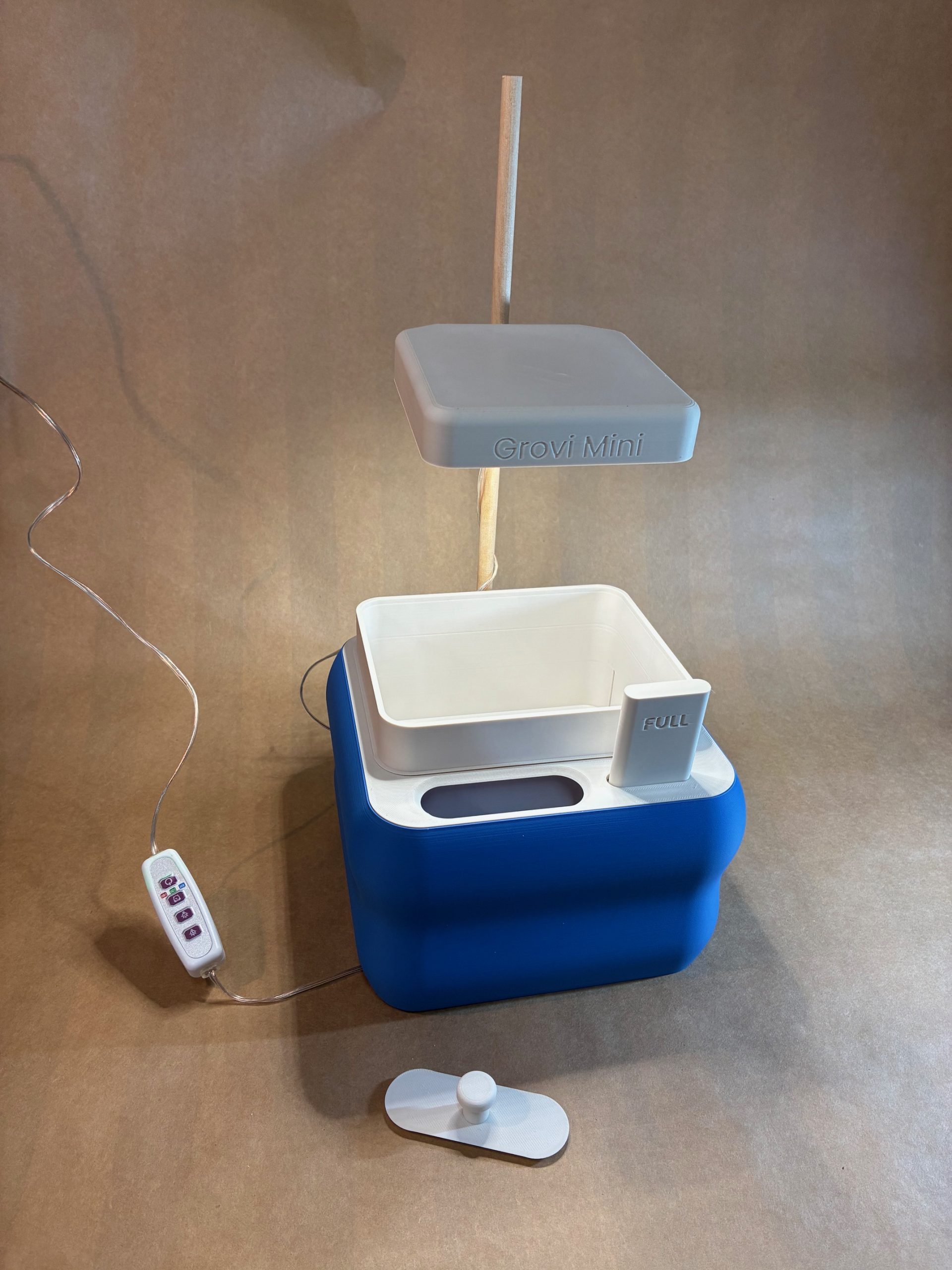 Der Pflanztopf ist bewusst kompakt und leicht gestaltet, sodass er selbst auf kleinen Fensterbänken oder Arbeitsflächen Platz findet. Das moderne, minimalistische Design fügt sich harmonisch in jede Umgebung ein und macht den Grovi Mini zu einem echten Blickfang. Gleichzeitig ist er unglaublich einfach zu bedienen: Wasser einfüllen, Samen einsetzen, Licht einschalten – und schon beginnt dein persönlicher Mini‑Garten zu wachsen.